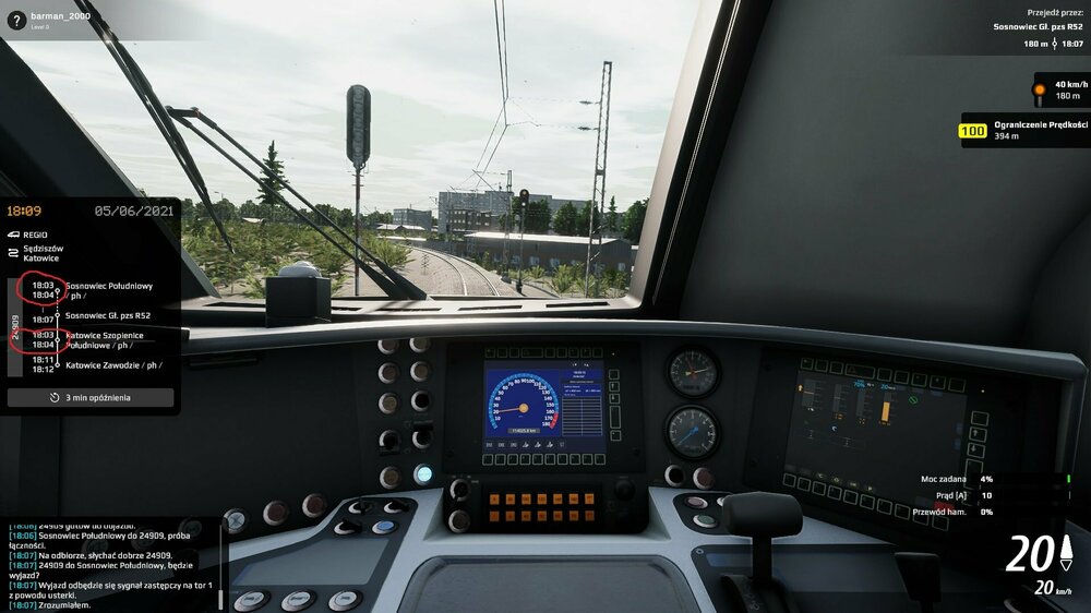 Jak na screenie, czasy są źle ustawione, przejechałem cały scenariusz. Ogólnie rozkład jest jakiś dziwny, do Wolbromia 7 minut opóźnienia, a potem do Olkusza jesteśmy na plan. Do tego pomimo ustawiania wskaźników o kanale radiowym R5 gra każe jechać na R4 albo R3 i daje ujemne punkty 😛