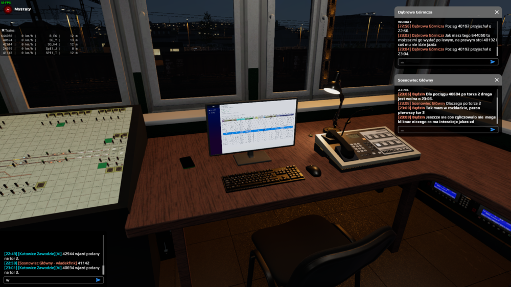 Podczas pełnienia dyżuru w Będzinie wszystko co ma interakcję straciło swoją funkcję. Nie mogę wyjść drzwiami, nie mogę używać telefonu, czy komputera z podglądem na rozkład jazdy. Po zamknięciu okienek do wymiany informacji z innymi dyżurnymi brak możliwości otwarcia ich ponownie.