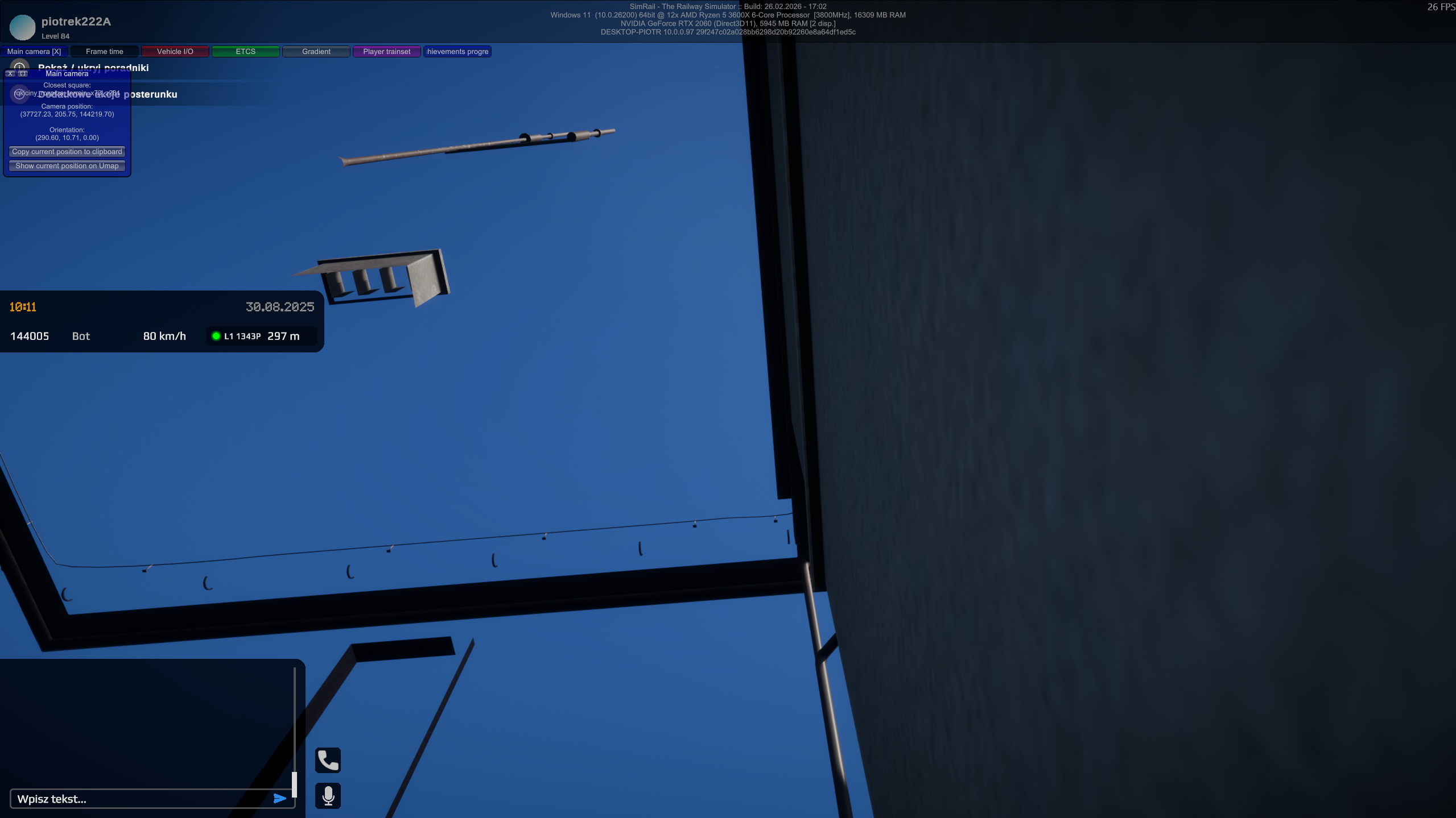 1. Pozycja: S: rokiciny_rozprza_terrain_x73_z281, P: (37723.77, 205.75, 144226.40), R: (3.60, 186.71, 0.00) Po wejściu na dyżurkę stoi się w ścianie się w budynku nastawni