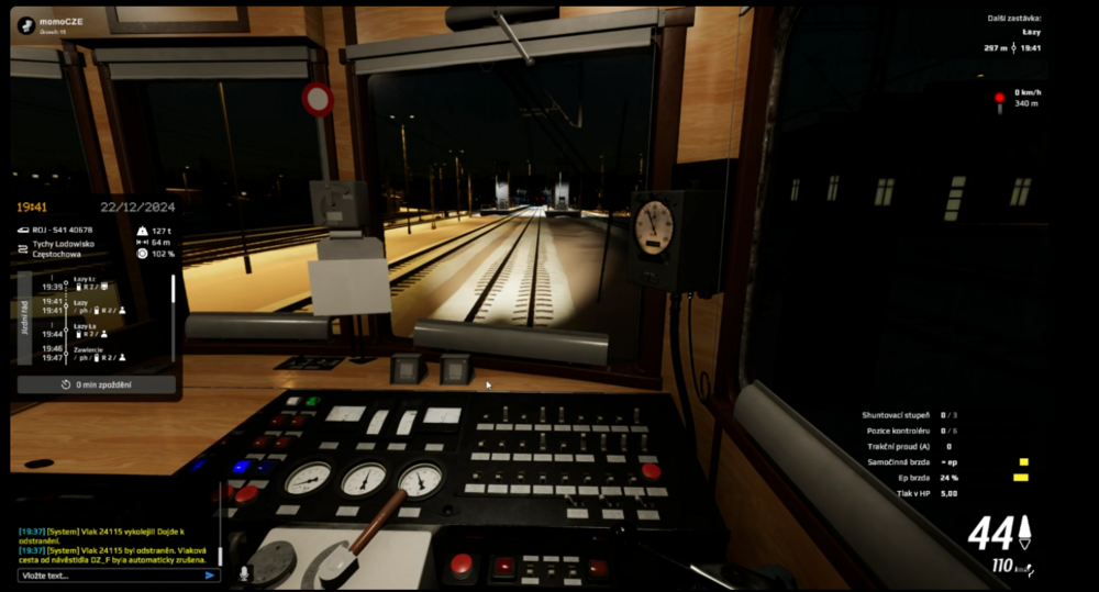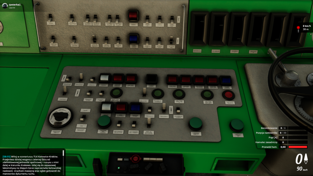 When going into the ET22 in the "[TLK] Katowice - Krakow" scenario (didn't check in other scenarios), instrument textures are weirdly glitched until they are lit up with the "Oswietlenie przyrzadow" switch, when they suddenly load in normally. BUT indicator lights on the bottom desk stay glitched (again, until they are interacted with using the buttons under them) This happens in both cabs. SimRail_log_2024-12-14_17-33-17.txt