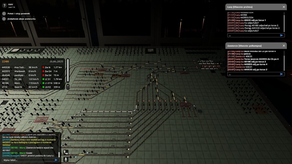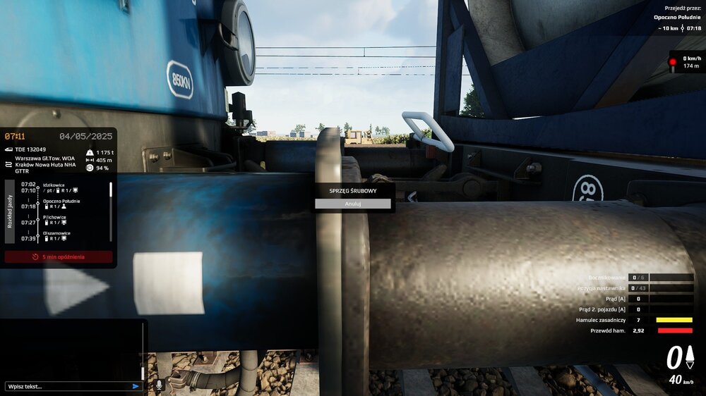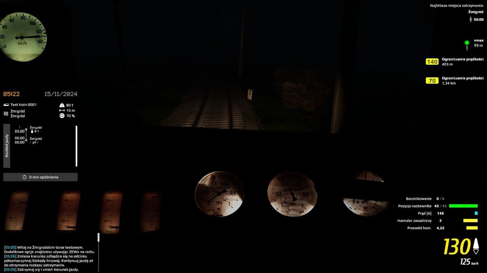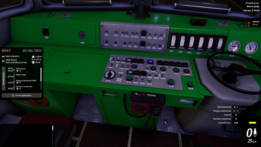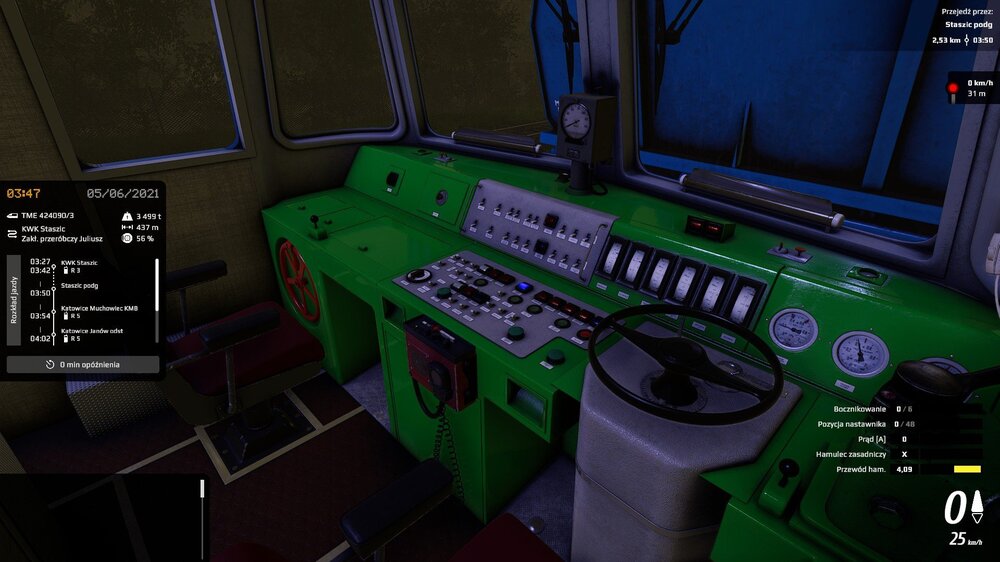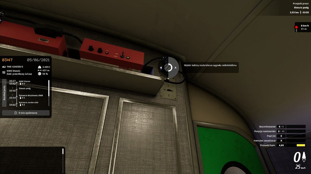 Nie wiem czy tak jest w rzeczywistości, ale poniższe elementy nie przestają działać po odłączeniu akumulatora: - światła przednie i tylne, - oświetlenie kabiny, - ekrany w kabinie, - podświetlenie przycisku wyboru kierunku jazdy. Systemy, które przestają działać po wyłączeniu akumulatora: - radio, - oświetlenie pulpitu, - po zmianie typu świateł zewnętrznych te nie zmieniają się. Po włączeniu akumulatora wcześniejsza zmiana trybu zostanie teraz zastosowana. SimRail_log_2025-05-05_22-38-45.txt