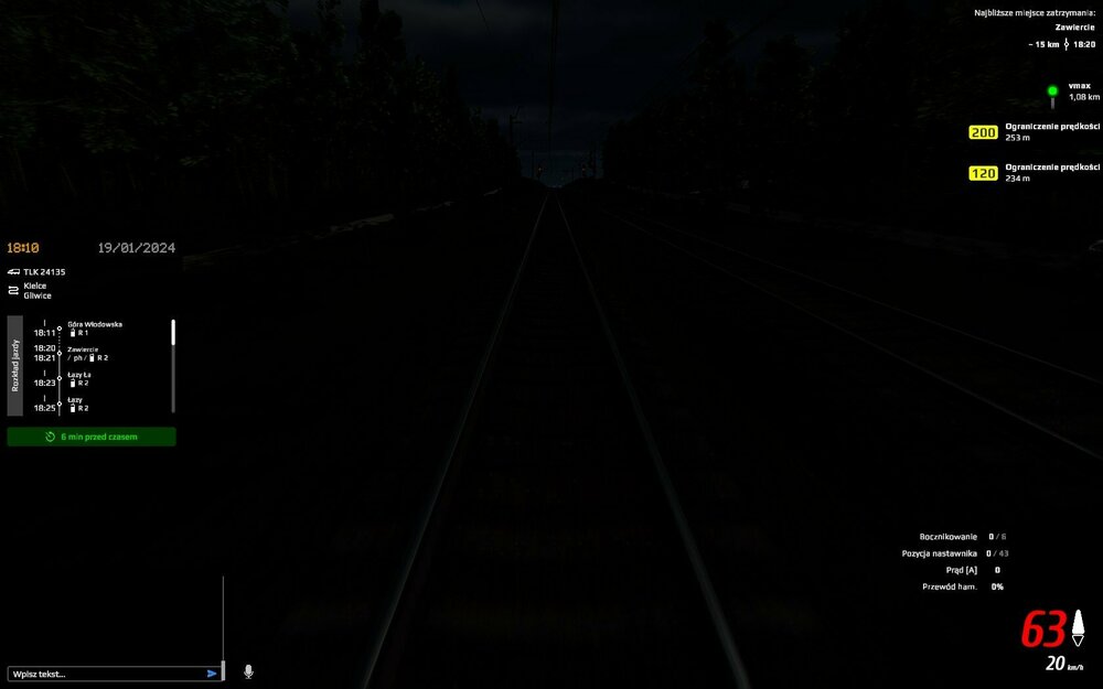 V stanici Góra Włodowska na koleji 3 za odjezdovým návěstidlem směr Zawiercie je pomalá jízda max 20km/h.