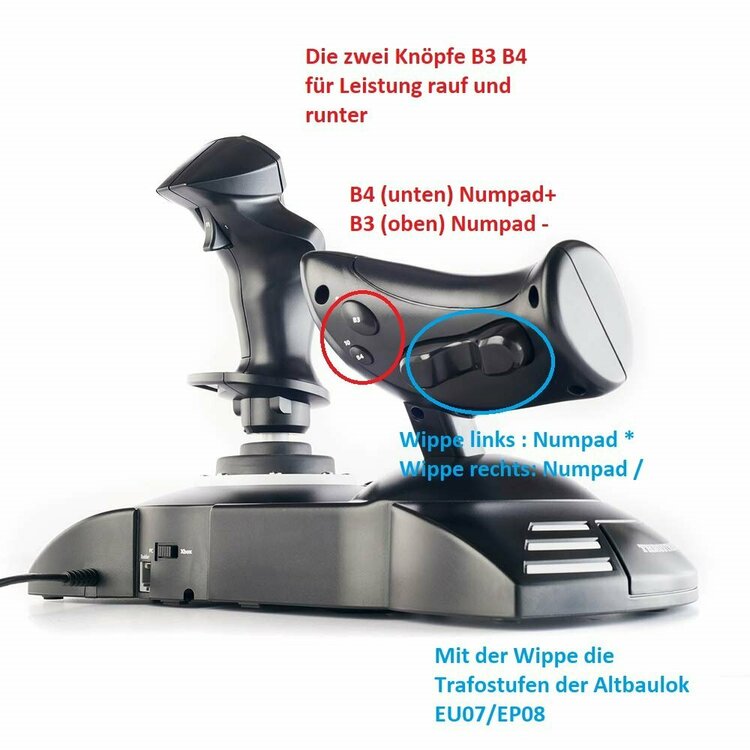 Gehe auf den Reiter Options und wähle unten die Option aus mit den meissten Achsen/Buttons, die dir zur Verfügung stehen. Dann sollten alle Achsen/Tasten auch die am Schubhebel hinten zur Verfügung stehen und Belegbar sein. Zum Thema Züge und Fahren und Bremsen.... Es gibt eine Tastaturbelegung in Simrail (in TSW, Zusi, TSC usw auch). Dankenswerter Weise sind die Tasten in Simrail immer gleich für jede Lok! Also Leistung Auf/Abschalten sind immer die gleichen Tasten genau so wie Zugbremse, Lokbremse, E-Bremse. Natürlich funktioniert die Tastenbelegung der E-Bremse nicht bei einer Lok, die keine hat, da haben die Kommandos halt einfach keine Funktion. Was ich empfehlen kann ist mal folgendes Grundsetup: Leistung solltest du mit Tasten auf dem Schubhebel links Auf und Abschalten. Nicht mit dem ganzen Hebel selber denn bei manchen Loks wie der TRAXX musst du öfters "doppelt" klicken. Wenn du den Wippschalter hinbekommst im joytokey Setup, dann da drauf die Trafostufen der Altbauloks damit du die auch direkt Schalten kannst. Den Rest vlt für den Anfang so: Damit hast du alle wichtigen Funktionen belegt und kannst fahren! Den 4 Wege Schalter hast du dann noch übrig, die andere Taste am Joystick und ich glaube noch ein paar irgendwo an dem Ding. Dinge wie Scheibenwischer, jede der Lichtstufen usw und Aufstehen oder Hinsetzen habe ich alle nicht belegt in meinem Setup weil sie entweder nicht belegt sind in den Spielen oder auch wenig Sinn machen, da ja im Führerstand selber Schalter vorhanden sind. Ich denke auch, dass nun damit echt sehr viel Hilfestellung gegeben ist um zu fahren. Den Rest und die persönlichen Vorlieben bei der Bedienung bekommst selber hin! Ansonsten gibt es auf Youtube genug Videos. LG