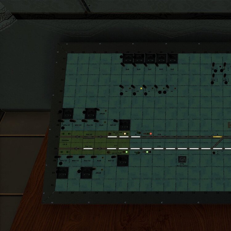 The Pwl 1Z in Raciborowice shows a white light when a route is set in or out track 1 between Zastów and Raciborowice. If you set an exit route to Zastów on track 1, the Pwl 1Z shows no red light.