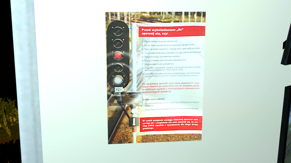 As it seems that some Dispatcher-Stations like Juliusz or DG Huta Katowice are not fully equiped with track-clearance indicators, it would be a very appreciable detail to enable the auxiliary light on the buildings to check for the end-of-train sign Pc5 at night. My suggestion is to make use of the "3"-key, which currently does not seem to be functional in dispatcher-mode, to toggle the first-person camera at a position outside of the building´s windows, like if the player would stick his head out. Then, the player could the be enabled to move his first-person-camera around with the mouse as usual, while the focus of the light is centered in the middle of the camera. In effect both the first-person view and the beam of light would be linked together, creating the impression that the player is controlling the light with his mouse while checking the Pc5-Signs at the end of the train. The screenshots below are to illustrate this idea. Of course, since the reason for this suggestion is to enable a more realistic game-play, the light would have to be bright enough in-game to make the observation of Pc5 - signs at night/ in darkness graphically possible. Depending on how these lights work in reality, the devs would also have to introduce a new usable switch on the inside of the signal box I guess.