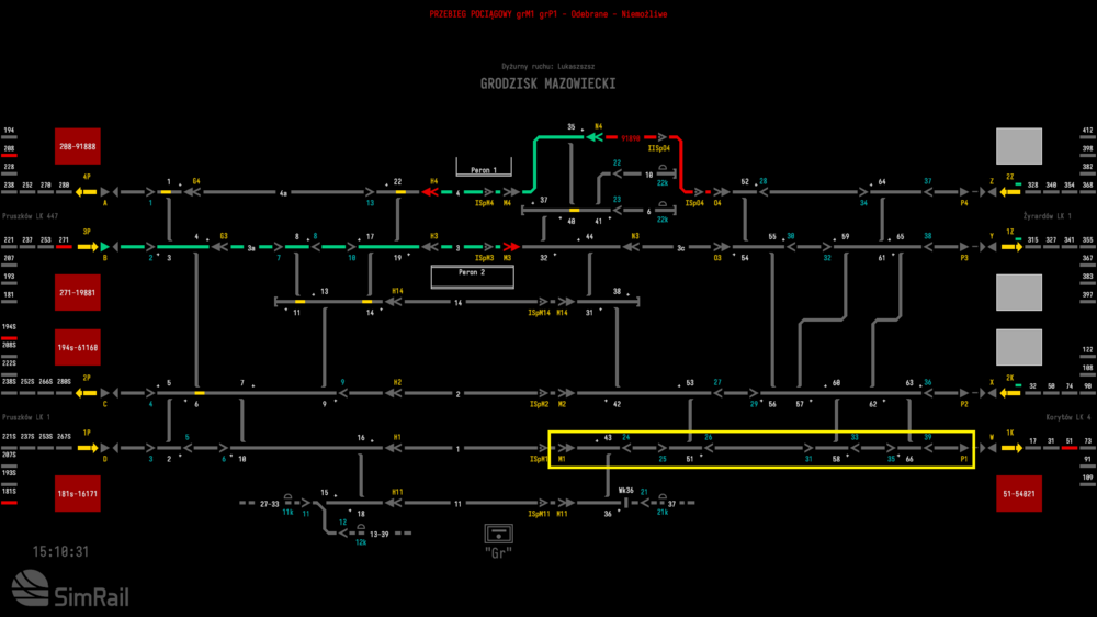 Witam, podczas rozgrywki na kilku serwerach występuje problem z podaniem przebiegu pociągowego na nastawni w Grodzisku Mazowieckim w kierunku Korytowa (semafor P1) i Żyrardowa (semafor P3). Próbowałem ustawiać przebieg z różnych semaforów stacyjnych (M) i poza stacyjnych (O), ale po wspomnianej próbie wyświetla się komunikat o niemożliwym ułożeniu przebiegu pociągowego, co potwierdzają zrzuty ekranu. Dodatkowo pociągi przejeżdżające przez Grodzisk na kilka sekund zatrzymują się w miejscu i zaraz znowu jadą, aby po kilku kolejnych sekundach znowu się zatrzymać. Omawiane błędy, dotyczące podania semaforów wyjazdowych i lagujących się pociągów, nie występowały przed aktualizacją.