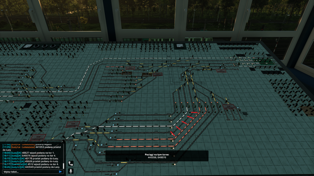 Witam, podczas dyżurowania na nastawni Łazy Ła zauważyłem, że w trakcie postoju dwóch pociągów towarowych obok siebie, po najechaniu kursorem myszy na niektóre odcinki sygnalizujące zajętość toru (mowa o odcinkach, które są ułożone pod kątem) wyświetla się informacja o tym, że na tym odcinku znajdują się dwa pociągi, co nie jest zgodne ze stanem faktycznym w grze. Na przesłanych zrzutach ekranu zaznaczyłem na czerwono odcinki wyświetlające błędną informację i na zielono odcinki wyświetlające prawidłową informację. Prawdopodobnie błąd może dotyczyć wszystkich nieparzystych odcinków, które są ułożone pod kątem. Odcinki poziome i pionowe wyświetlały poprawne informacje.