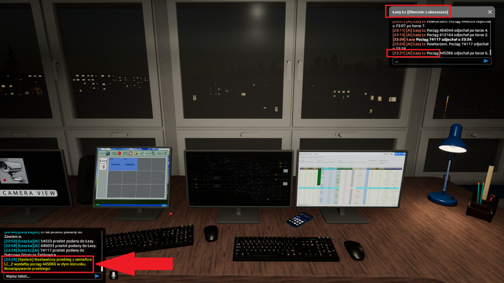 Witam, chciałbym zgłosić dwie sprawy dotyczące nieprawidłowości dyżurowania bota na nastawni Łazy ŁC (serwer PL3, dnia 19 maja godz. 23). Pierwsza kwestia to fakt iż bot chciał wysłać pociąg w niewłaściwym kierunku, co raczej nie powinno mieć miejsca. Druga sprawa to błąd dotyczący nieprawidłowej nazwy bota (zamiast napisu AI wyświetlała się nazwa mojego konta podczas, gdy dyżurowanie pełniłem na okolicznej nastawni Łazy). Oba przypadki zostały przedstawione na poniższym zrzucie ekranu.