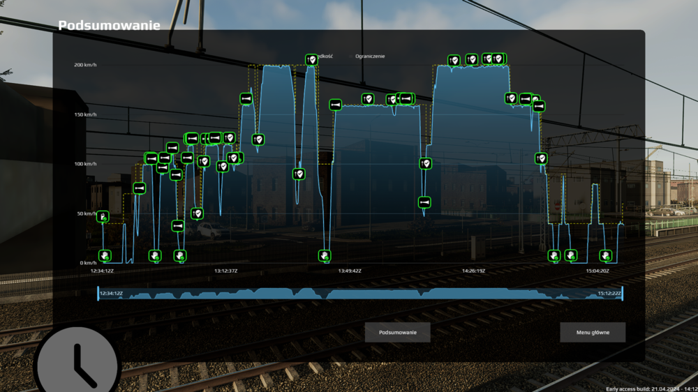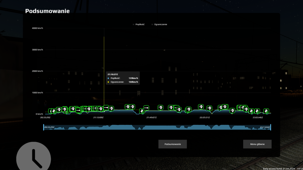 Witam, prowadziłem dzisiaj pociąg o numerze 4124 (taka sama relacja, co 4140) i zakres ograniczenia prędkości na wykresie podsumowania przejazdu prezentował się już prawidłowo, co potwierdza zrzut ekranu zamieszczony poniżej. Jedyne do czego mogę się przyczepić to fakt iż temat od kilku dni oczekuje na zatwierdzenie i opublikowanie dla wszystkich użytkowników forum. Pozdrawiam