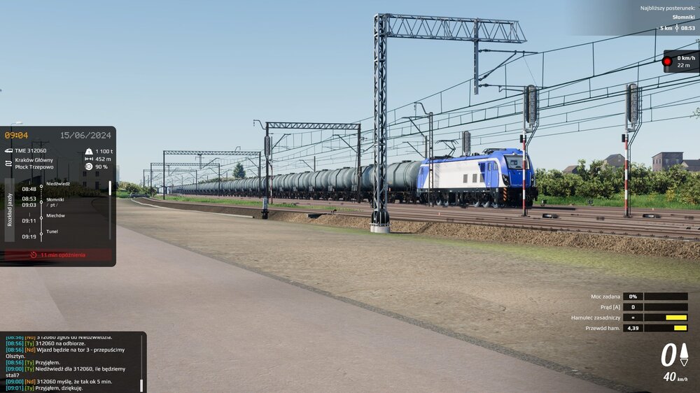 A ja mam taki problem z tym scenariuszem towarowym, oczekując na pociąg z Olsztyna ma podany semafor zielony, a pociąg nie jedzie więcej niż pięć min czekam i nic się nie dzieje. -