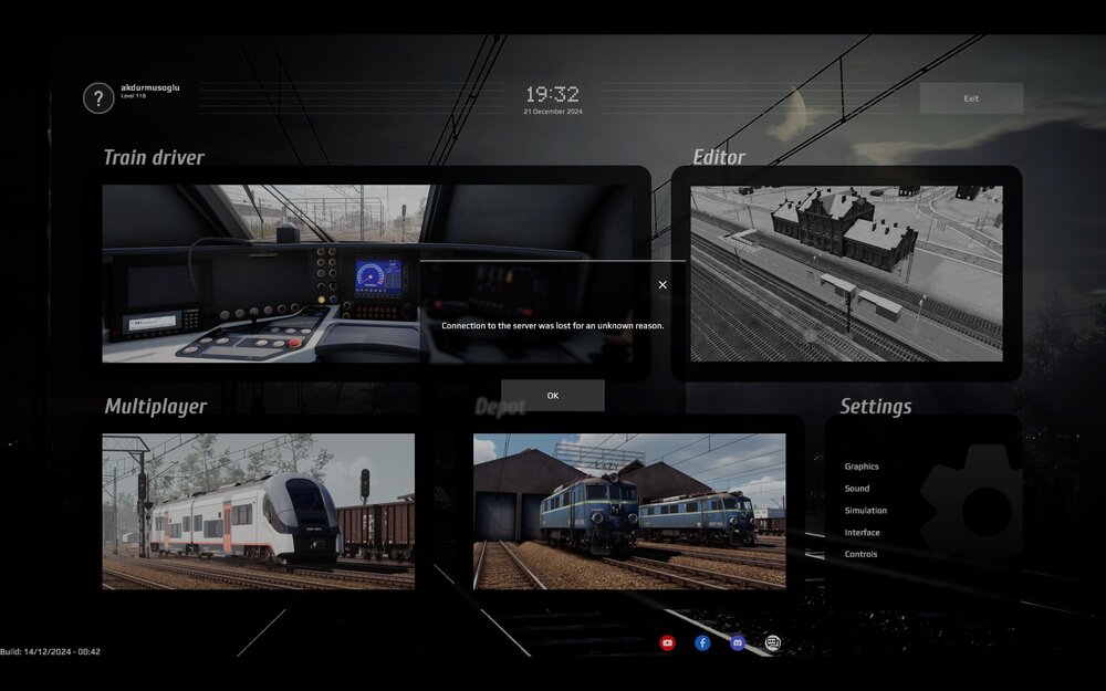 I've been persistently unable to connect to the EN 1 server. This issue has persisted for an extended period. Regardless of using a Wi-Fi or a high-speed connection, and despite having satisfactory connection speeds and ping, I consistently encounter the error message "Connection to the server was lost for an unknown reason". Intriguingly, when I establish a connection to my mobile phone's personal hotspot, which offers a slower connection compared to Wi-Fi, I am able to successfully log in to EN1. However, when I attempt to connect using other devices, the issue persists. Consequently, I am forced to switch my Wi-Fi connection to my mobile phone hotspot to access EN1, a workaround I am eager to avoid. The attached log file provides additional context. SimRail_log_2024-12-21_19-42-01.txt