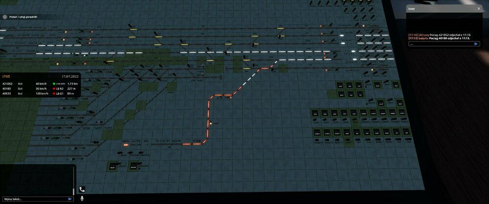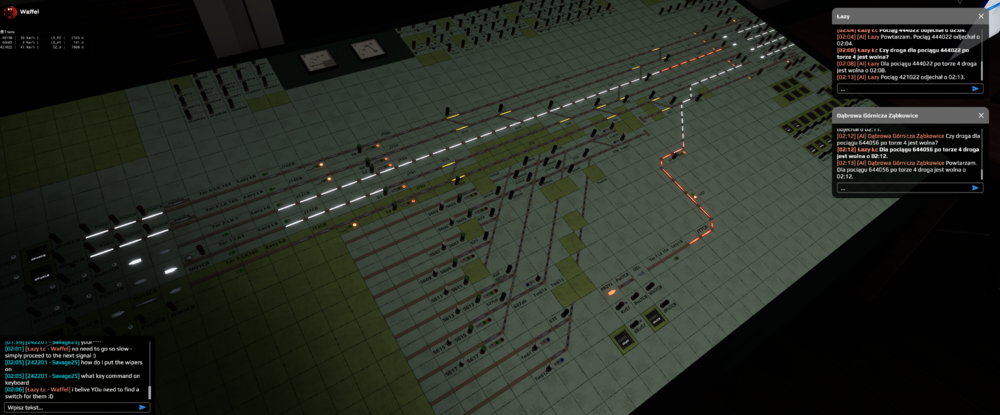 Cześć! Dzisiaj w czasie postoju w Dąbrowie Górniczej, z ciekawości udałem się do nastawni, i wygląda na to że jako mechanik mogłem: - operować światłami - operować centralką (klawisze, podnoszenie słuchawki, podświetlenie) - działał clickspot na panel dyżurnego (chociaż wygaszony) - bez problemu można też wejść czy wyjść z budynku Sugestia - by rzucić okiem, bo szkoda dawać opcje do trollowania, same odwiedziny w nastawni to nic wielkiego - tutaj na dłuższym postoju wątek roleplayowy się przyda.