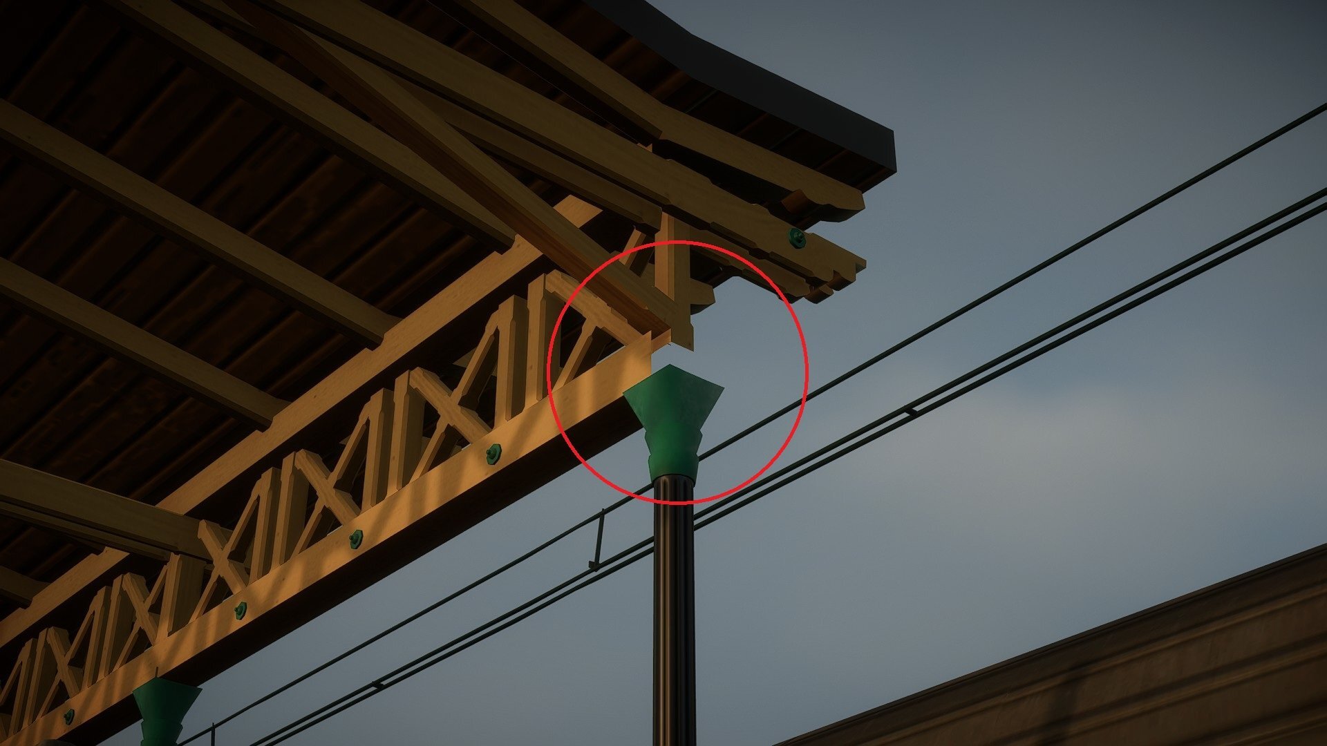 on the roof of the Piotrkow station the ends of the beams aren't modeled and so are see through S: rokiciny_rozprza_terrain_x69_z254, P: (35623.41, 207.05, 130058.60), R: (293.26, 234.74, 0.00)