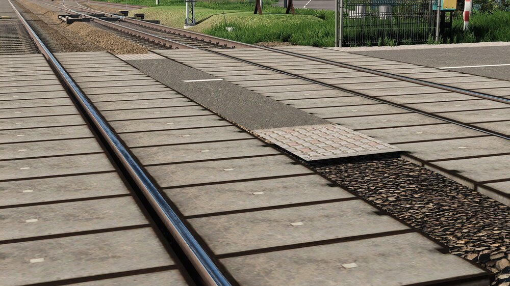The level crossing at Rogów (next to the signalbox) has some floading road segments between the tracks,