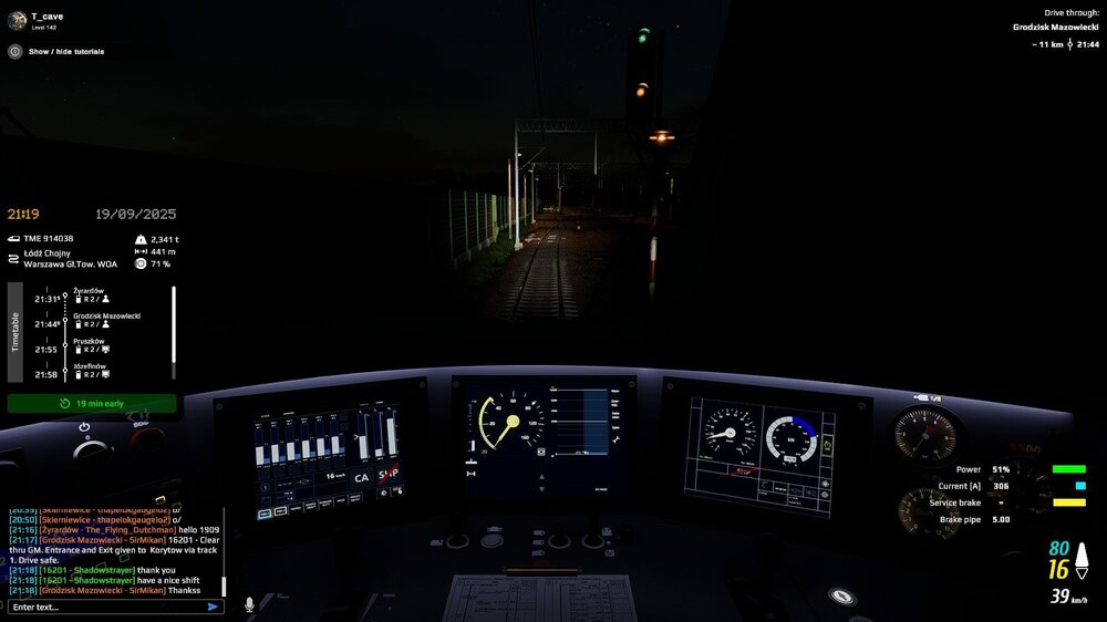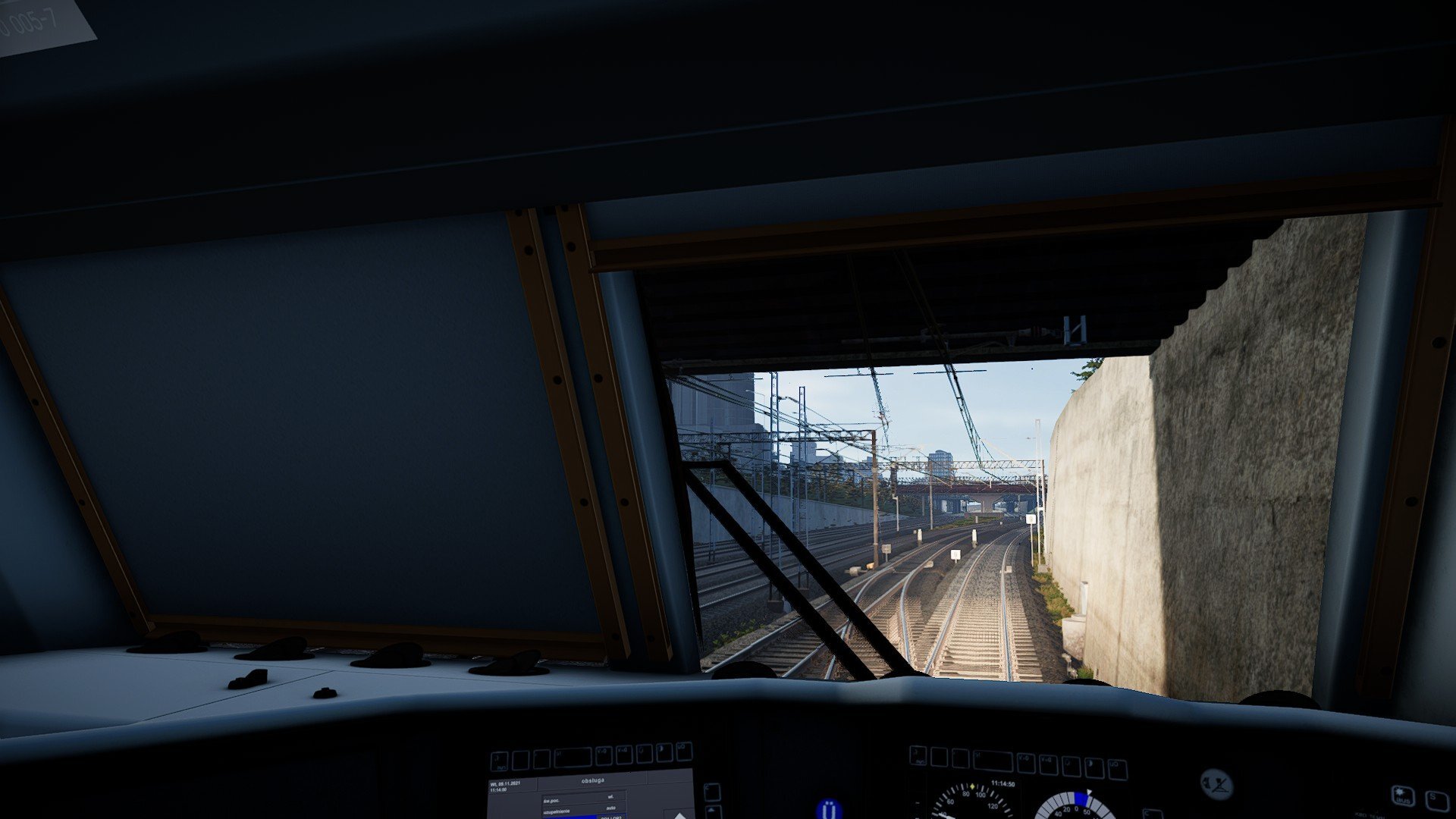 I was driving train 914038 on INT1 when this happened. Had no problems all the way to Zyrardów. I was stopped in the siding there, when departing after the stop the DMI was completely frozen. Even the "EVC disable" switch did nothing, SHP wasn't enabled, DMI wasn't reset, nothing. The maximum allowed speed in the HUD did match the last displayed speed on the DMI, but going faster did NOT give penalty points or a emergency brake logs.zip (I had to Zip the logs as there were so many from that session, first drove 11107, then 914038 the same session)