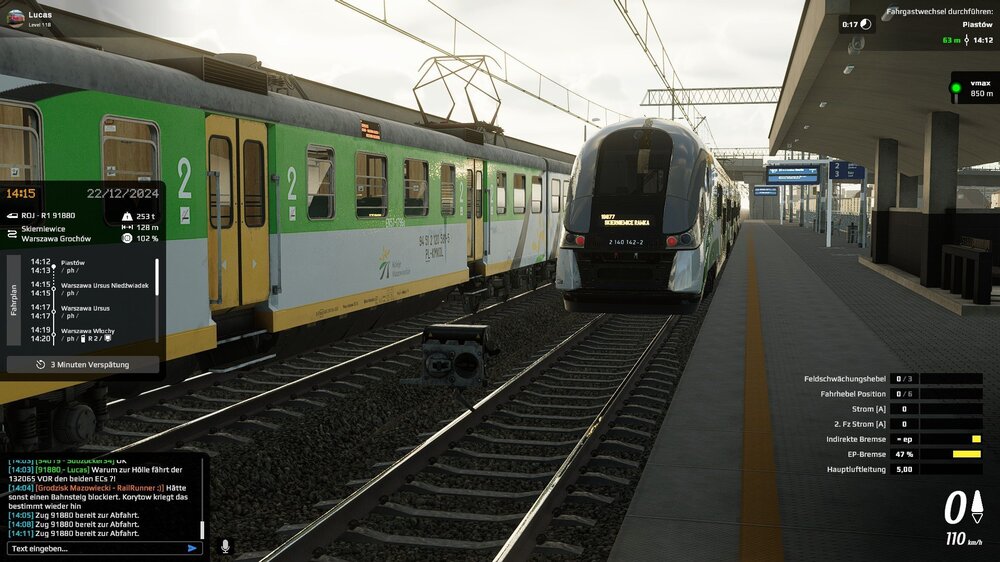 Also das mit den PTs der Wagen wäre zwar cool, aber denke nicht das die Entwickler an sowas aktuell denken. Das Rangieren wird nach meiner Vermutung früher oder später kommen im Multiplayer mit Abstellen der Loks usw. Der Richtungswechsel kommt spätestens bei Triebzügen mit der Lodz Strecke, da die Züge auf der Strecke wenden müssen. Bei abgestelltem Rollmaterial bin ich mir auch recht sicher das das mit dem Fahrplanwechsel dann quasi kommen wird, hoffe ich zumindest. Wenn nicht, auch nicht tragisch. Bei den Zügen die in die gegengesetzte Richtung verkehren bin ich nicht ganz einig mit dir. Es gibt durchaus Züge die in die Gegengesetzte Richtung verkehren. Kommt drauf an. -