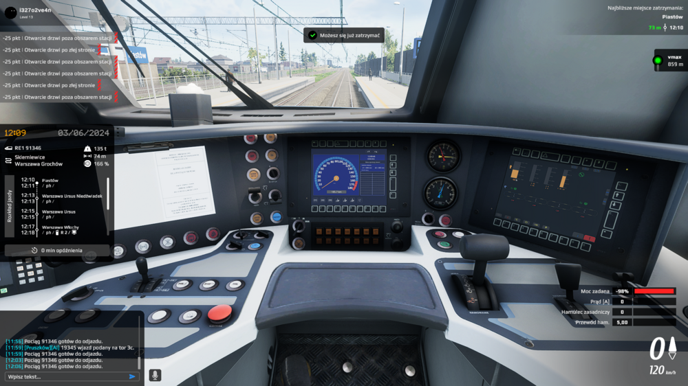 Po wyłączeniu bota i przejęciu kontroli, dojechaniu do stacji, pomimo otwarcia drzwi po poprawnej stronie, ujemne punkty.