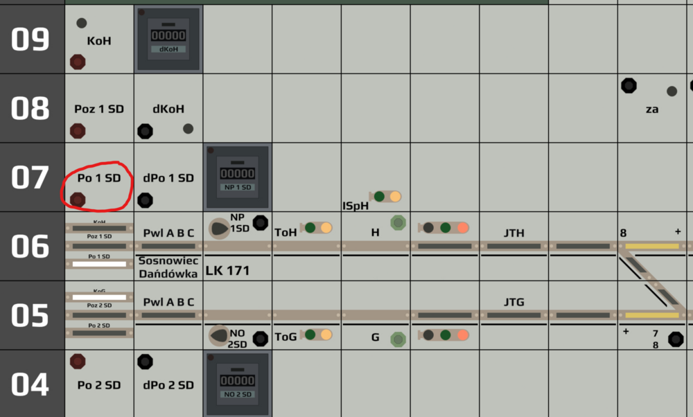 Hello, in Juliusz towards Sosnowiec Dandówka you have semi-automatic lineblock type C. So you have PO, POZ, KO blocks but in Juliusz only KO and PO works - sending on left track is not possible. So when train is departing towards Dandówka you have to use PO button asigned to the track, because if you forget to do it Dandówka will not be able to use KO so next train must be sent on SZ(Subsitute signal) there. Here the image with circled button you should use. -