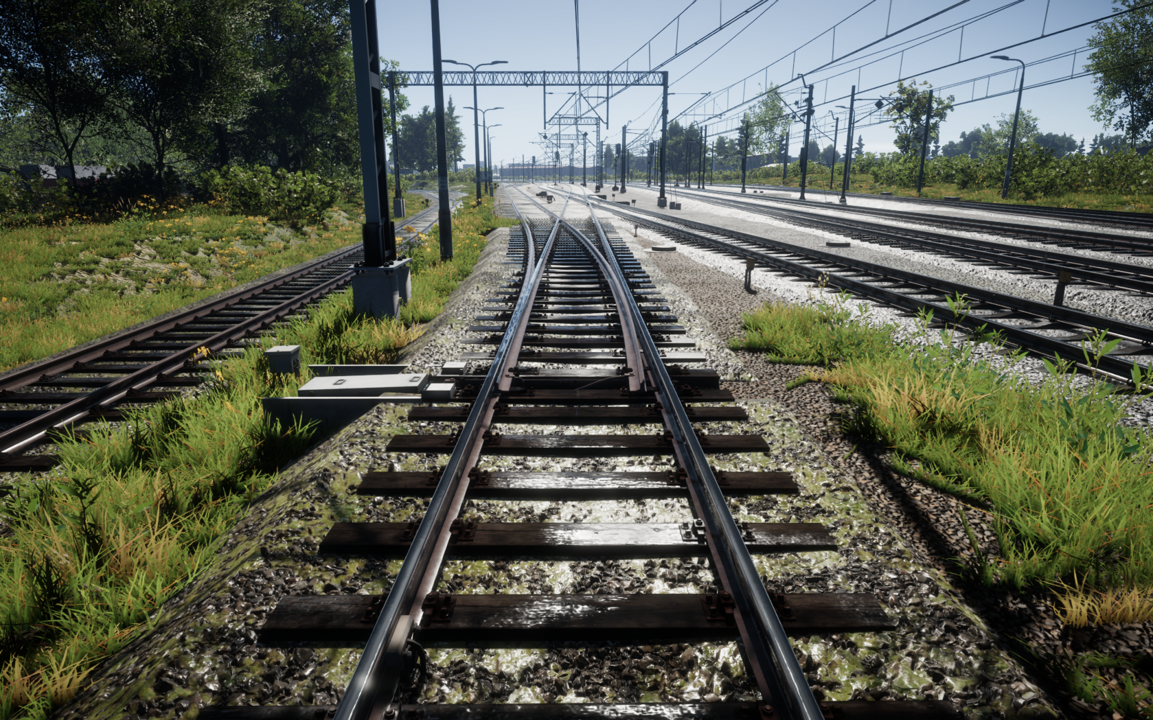 Lokalizacja na mapie: S: pabianice_rogow_terrain_x24_z319, P: (12408.39, 176.56, 163822.50), R: (0.87, 218.72, 0.00) Załączam 2 obrazy. U góry to widok z tyłu przejazdu pociągu 2 miesiące temu. U dołu jest screen z gry. Na słupach sieci trakcyjnej brakuje wskaźnika W 13 z obu stron oraz na skrajnie prawym torze słup sieci trakcyjnej ma "ciężar" prawie przy ziemi, a nie w połowie wysokości. Do tego nieistniejące ograniczenie doraźne, bo w grze ktoś ułożył krzywy tor. Roślinność pomijam. Załączam linki do przejazdu pociągiem Flisak mających miejsce 4 i 2 miesiące temu z sygnaturą czasową na miejsce z załączonego obrazu: https://youtu.be/7MHrxYv4WO4?si=YoK6SbXedTaGz8N3&t=9197 i https://youtu.be/sdNhtKkBQE0?si=A0dTi372gQP4NWyz&t=9982