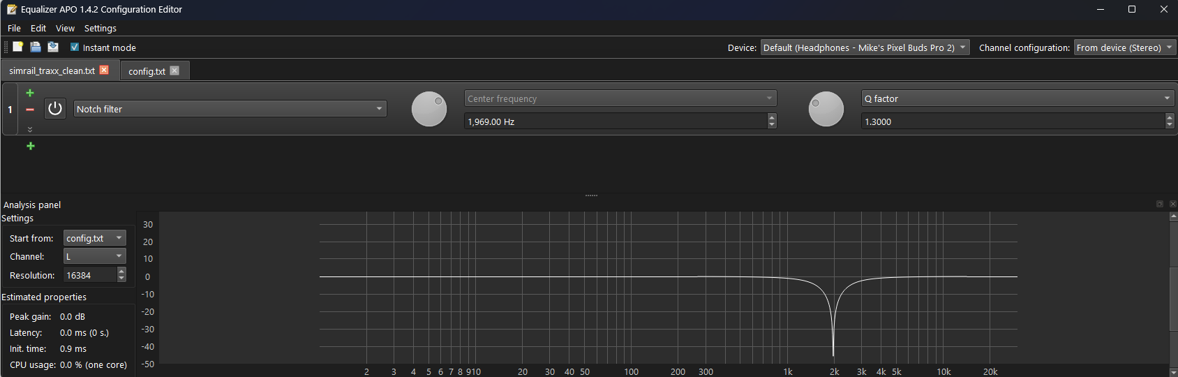wyskass Posted December 2 Posted December 2 There are some noises I also find annoying in the Traxx as well as a little bit in the Dragon, with wind, which sounds like white noise static to me. Now to be fair, this isn't necessarily a mistake. It's very possible that it's based on realistic sounds, and that some locomotives have annoying sounds. That's life.. Some of us just don't want ALL realism when the annoyance/value ratio is high. Here's a suggestion... which I use. Equalizer APO. It allows you to add audio filters and tweak out the annoying frequencies. I hate the high pitch sound in the Traxx so I set a notch filter on that particular frequency. You can just play around with the frequencies or.. I like Friture FFT which can give you live frequency analysis and visually identifies certain peaks to maybe cancel.