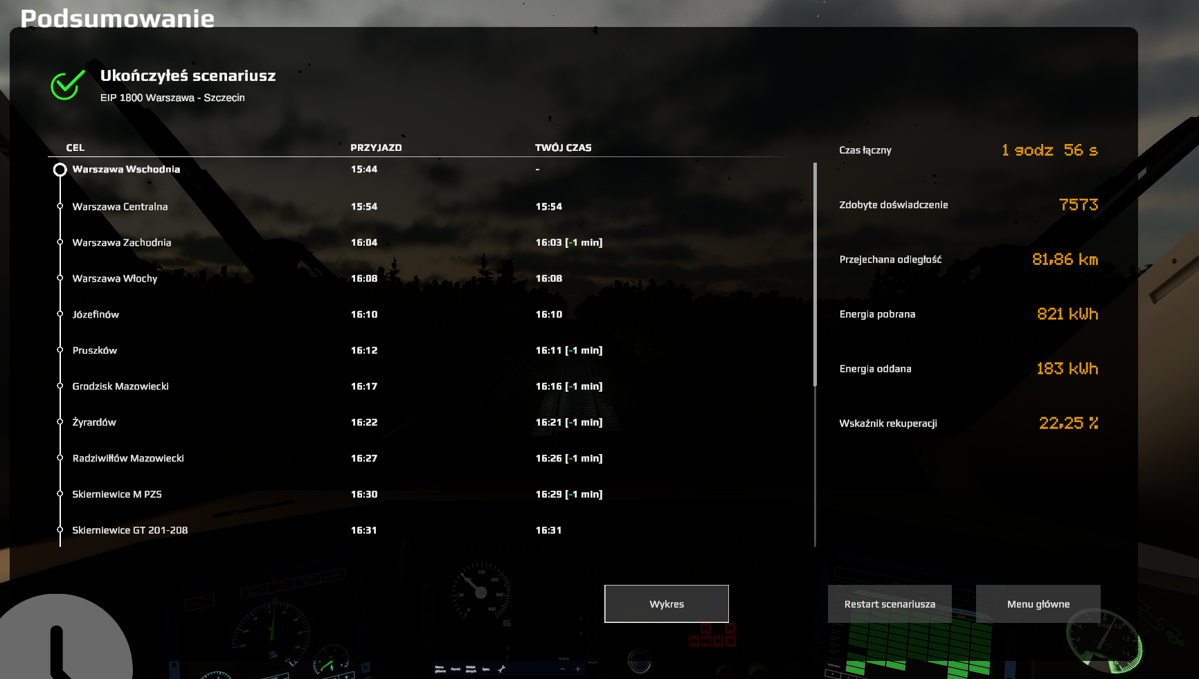margi1 Posted Friday at 09:52 AM Posted Friday at 09:52 AM Witam. Przedstawiam kolejny scenariusz w oparciu o realistyczny rozkład jazdy. Tym razem zadaniem maszynisty jest poprowadzić pociąg Pendolino relacji Warszawa Wschodnia - Szczecin Główny, objazdem przez Skierniewice, kończąc scenariusz w Bełchowie. Scenariusz zawiera zdarzenia losowe, oraz dynamicznie zmieniającą się pogodę. Scenariusz należy wypakować do katalogu: SteamLibrary\steamapps\common\SimRail\SimRail_Data\StreamingAssets\Sceneries\99_CustomScenarios\Scenarios\ Hello. I present another scenario based on a realistic timetable. This time, the driver's task is to operate a Pendolino train on the Warsaw East - Szczecin Main Station route, taking a detour through Skierniewice, ending the scenario in Bełchów. The scenario includes random events and dynamically changing weather. The scenario should be extracted to the following directory: SteamLibrary\steamapps\common\SimRail\SimRail_Data\StreamingAssets\Sceneries\99_CustomScenarios\Scenarios\ EIP1800.zip 2 7