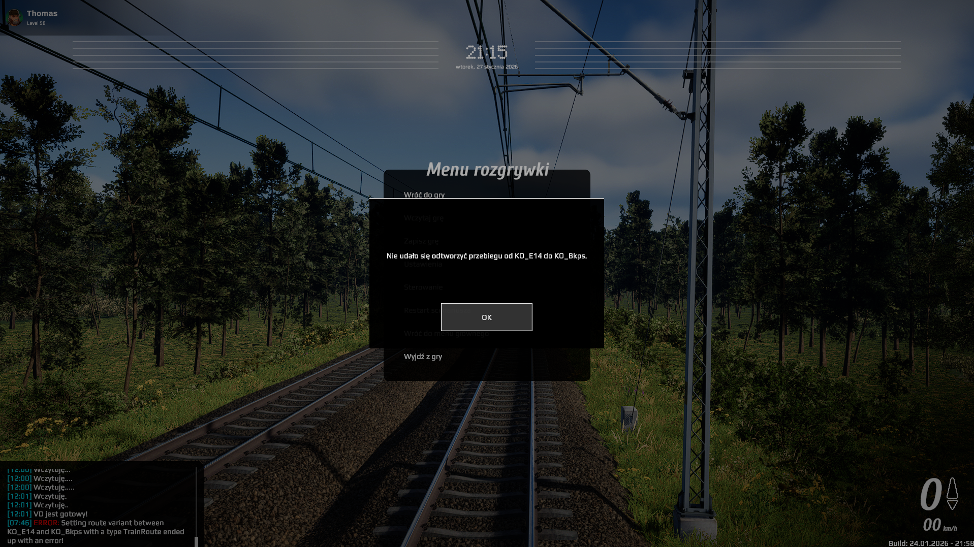 Thomas Posted January 27 Posted January 27 Czesć, Gram akurat na next_sp. [IR] Katowice - Warszawa Zachodnia. Już co najmniej trzy razy zaczynałem tą trasę i nie mogę skończyć. Pierwszy raz jechałem i po godzinie zrobiłem save. Na drugi dzień nie mogłem wczytać bo wyskakiwał błąd. Dzisiaj jadę od nowa, zapisuję co jakiś czas jest OK. Po godzinie nie mogę znowu zapisać - klikam zapisz ale nic się nie dzieje. Próbuję zapisać w różnych miejscach np. na stacji, podczas jazdy, wolniej, szybciej itd. Nie przejąłem się bo miałem zapis sprzed 30 min. Wczytuję dla testu czy wszystko jest OK i niestety pojawia się kolejny błąd. Nie mam siły już do tej gry. Nie mam możliwości zagrania ponad 4h scenariusza za jednym razem. Czekam na kolejne wersje w których zapisywania będzie poprawnie działać. Pozdrawiam, Th