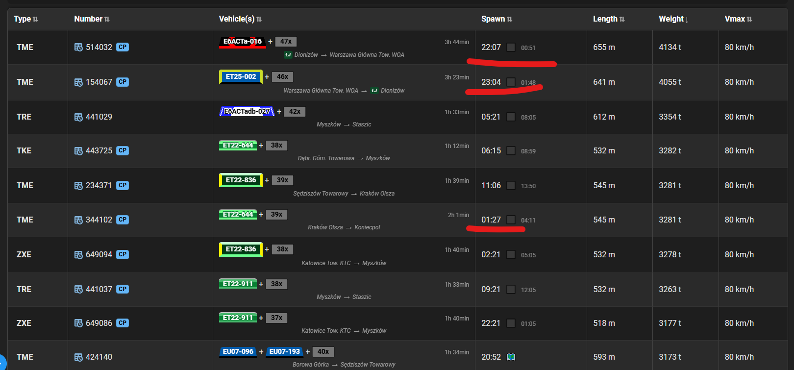 misiek_131415 Posted Monday at 09:35 PM Posted Monday at 09:35 PM Nie ma już INT6, nie ma UA1. Brakuje serwera gdzie wieczorem można jechać skład nocny lub taki który łapie reset o 1:30 Może można poświęcić jeden serwer na czas +4. Poniżej najcięższe towary w simrail. Dwa najcięższe nie da się przejechać bez zaliczenia resetu. A to psuje przejazd.