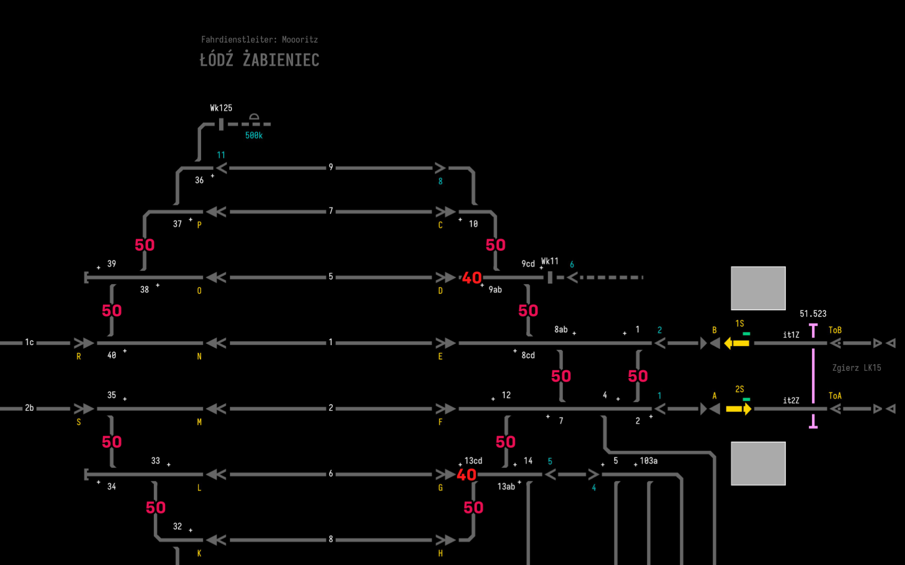 Masterczulki Posted Friday at 07:47 PM Posted Friday at 07:47 PM (edited) Przy wyjeździe z toru 7 w kierunku Zgierza semafor C wyświetla prędkość 40 km/h, mimo że według schematu stacji powinno być 50 km/h. Sprawa była już zgłaszana i podobno została naprawiona (https://git.simkol.pl/simkol/terraindata-25/-/issues/1192), ale jechałem właśnie w scenariuszu @patwrobel torem 7 w kierunku Zgierza i wyświetla się dalej 40 km/h. Edited Friday at 07:48 PM by Masterczulki